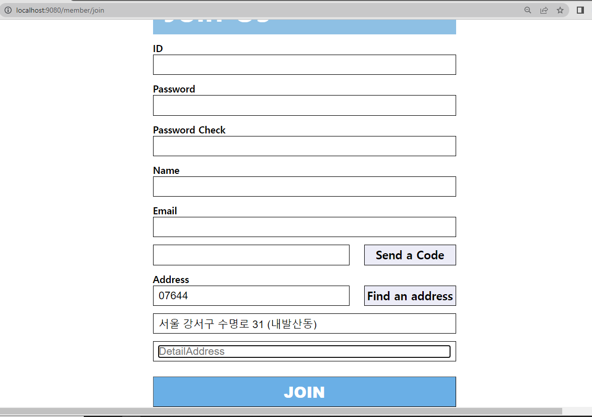 필자가 만든 코드에서는 '참고항목'필드가 없다. 그래서 주소필드에 참고항목 필드를 합쳤다.