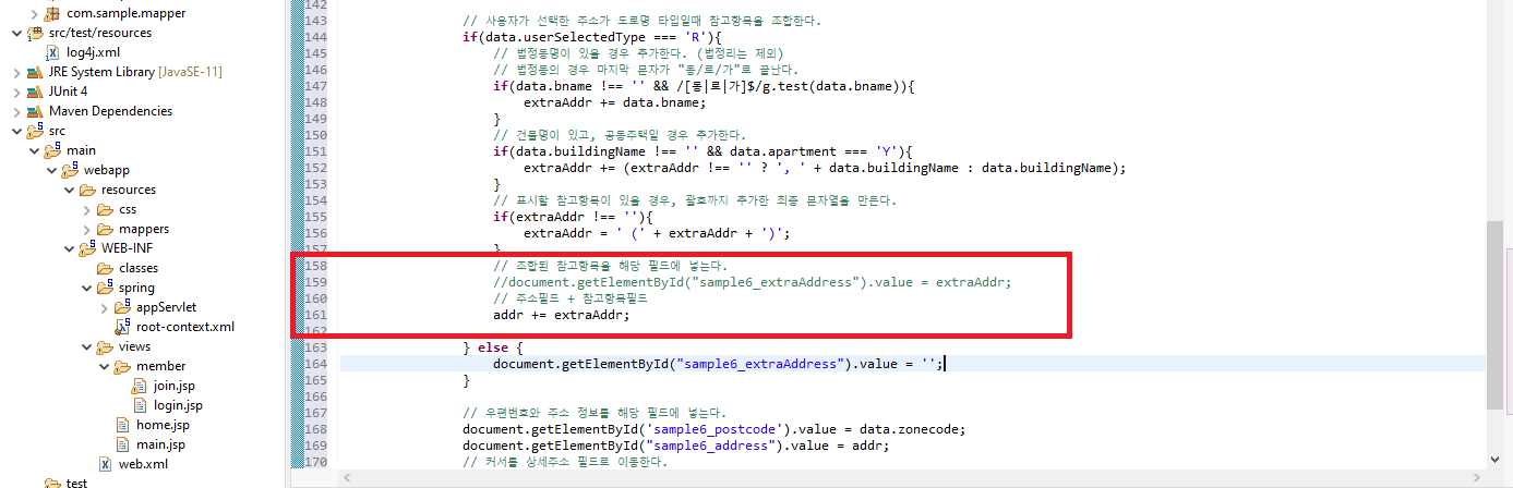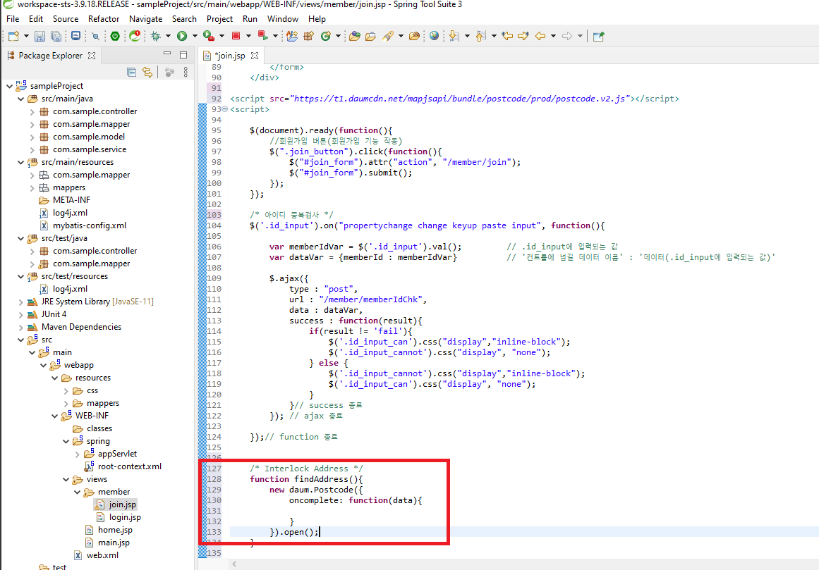 Daum 주소록 API를 사용하고싶은데 그러면 아래 연결코드를 'join.jsp' 파일에 추가해야한다.